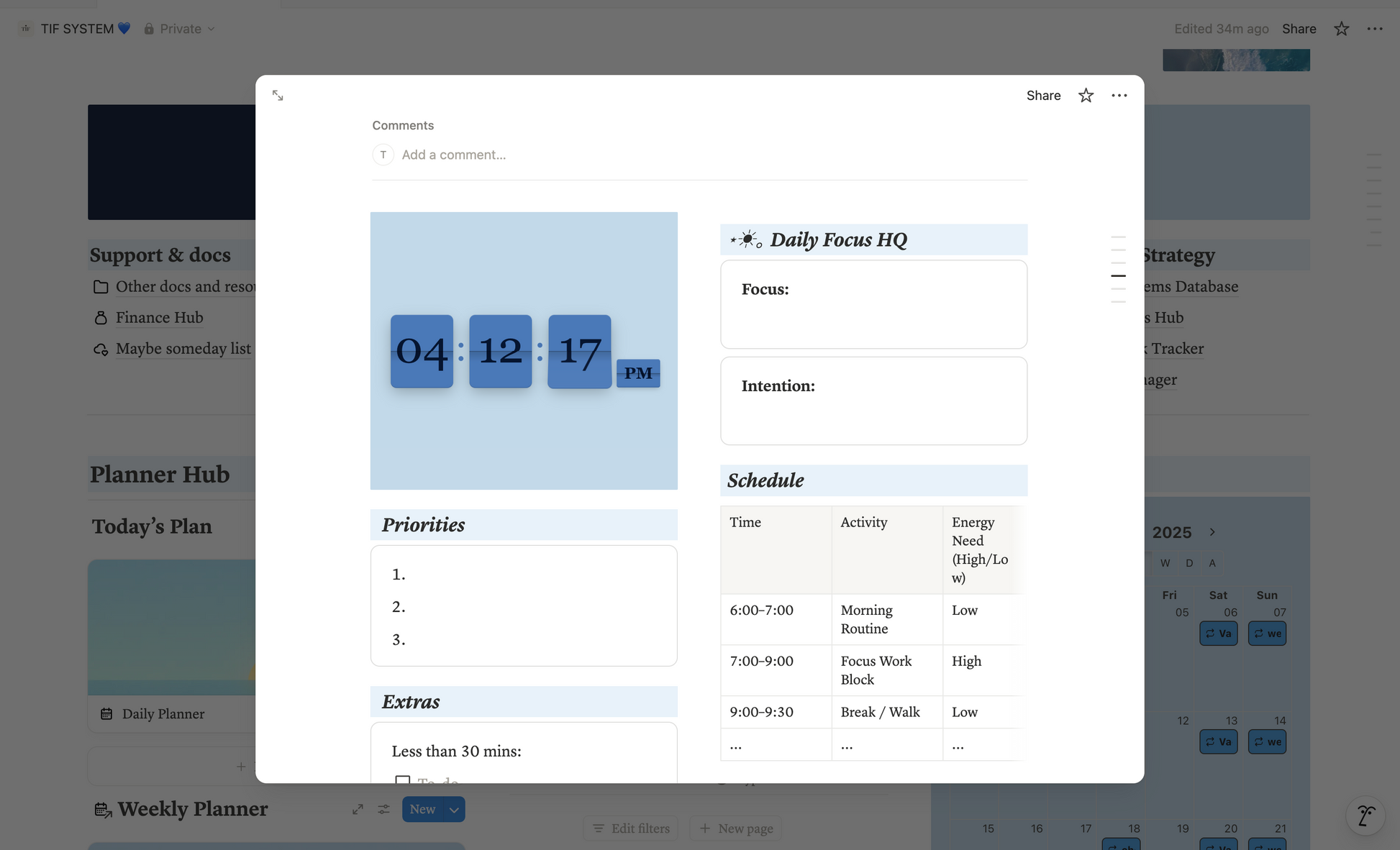 • A system that saves you 5–10 hours every week by cutting wasted time and decision fatigue• Weekly and daily planners that keep you focused on what actually matters instead of endless to-do lists• Built-in reset rituals so you can recover quickly when life gets messy and never lose momentum